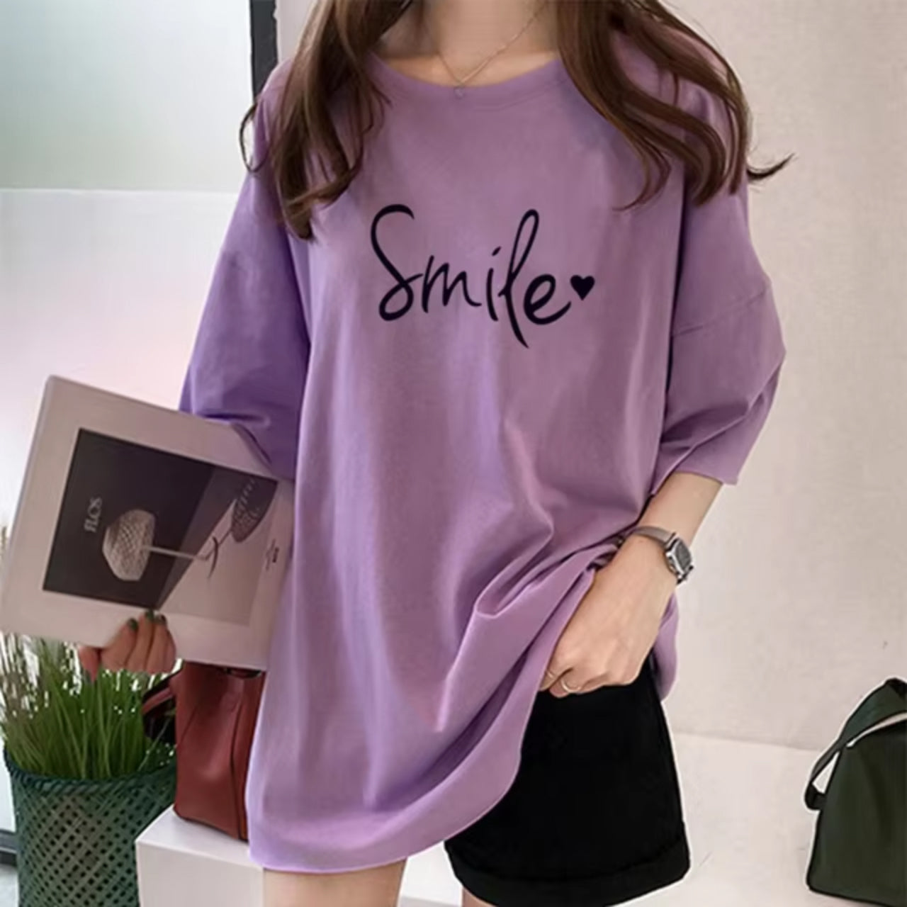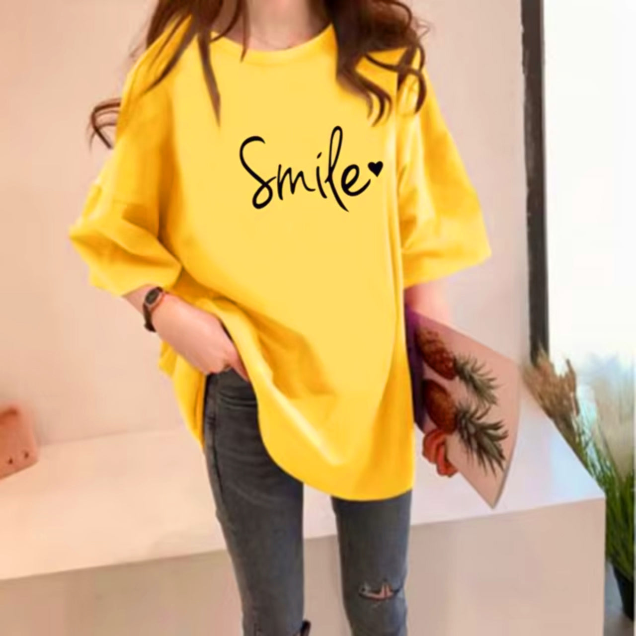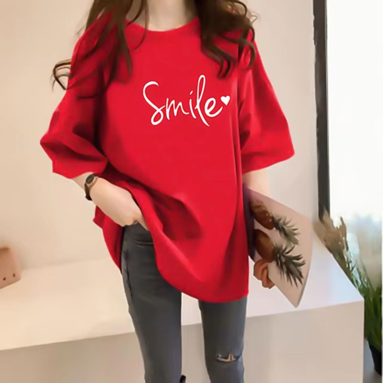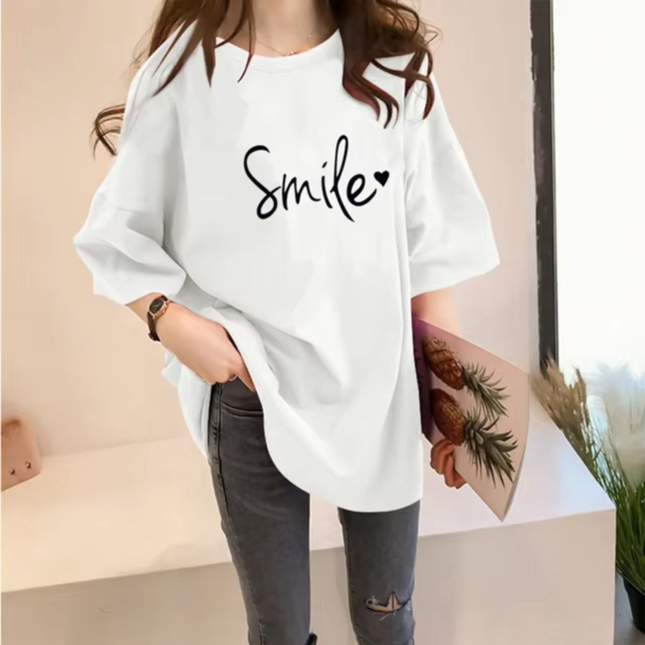 Smile Printed Short Sleeve Casual Solid Loose fit Women's T-Shirt