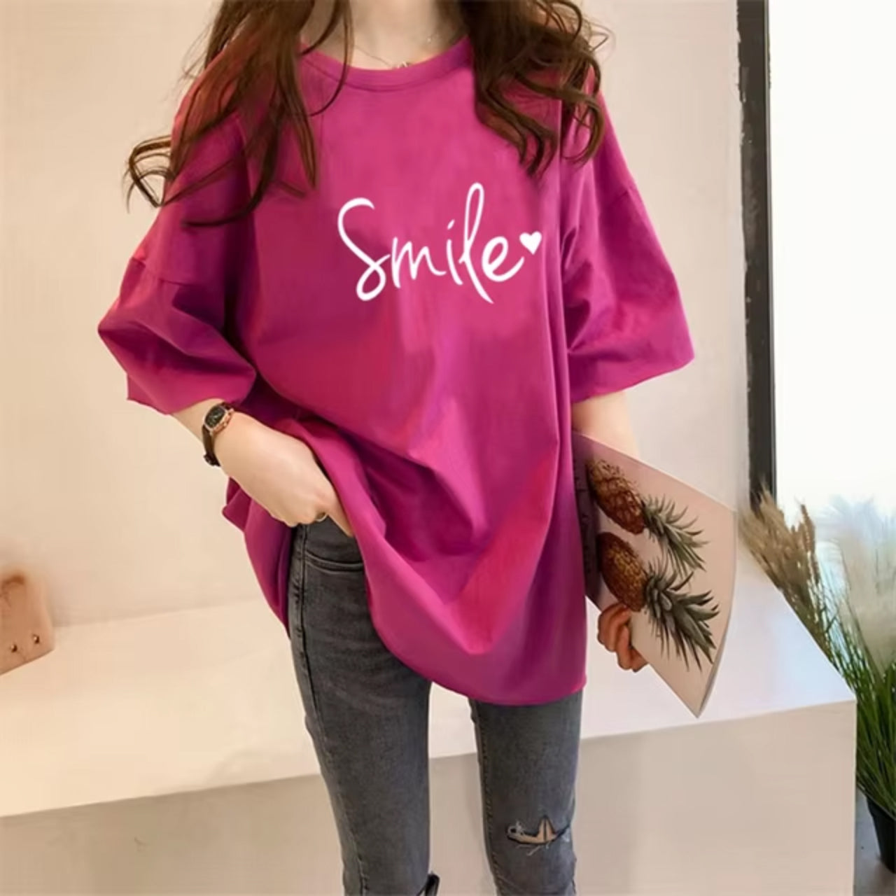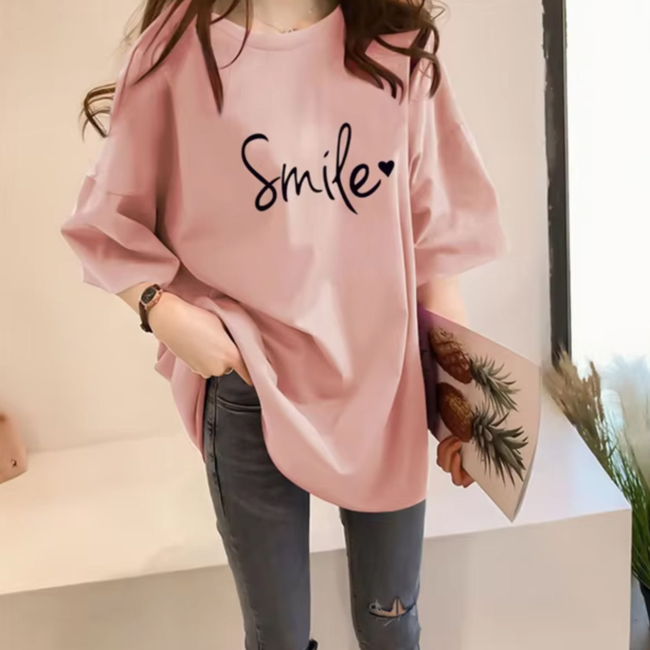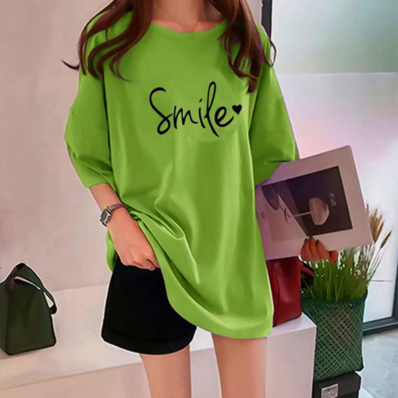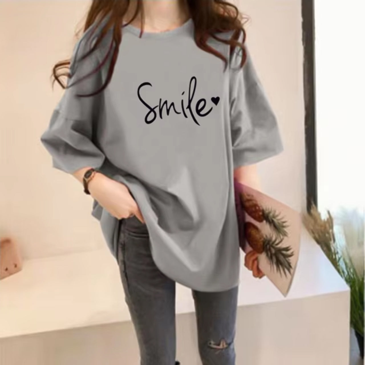 Smile Printed Short Sleeve Casual Solid Loose fit Women's T-Shirt